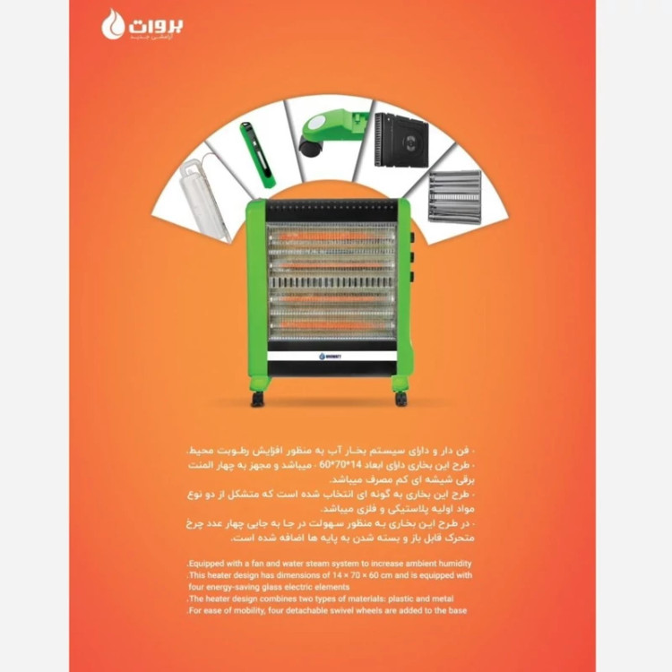 بخاری برقی بروات، گرمایی بی نظیر فصل سرما در راه است و باید برای گرم کردن خانه خود چارهای اندیشید. بخاری برقی بروات یک انتخاب عالی برای گرم کردن خانه شما در فصل سرما است. این بخاری با ویژگیهای منحصر به فرد خود، گرمای دلچسب و هوای تازه را به خانه شما میآورد. از ویژگی های این محصول میتوان به فن دار بودن، مخزن بخور، سنسور واژگونی، ترموستات و چرخ دار بودن برای حمل راحت اشاره کرد. تضمین اصالت و کیفیت کالا ارسال با تیپاکس و باربری های متعبر به تمام نقاط کشور تضمین کمترین قیمت پشتیبانی 24 ساعته رنگ بندی موجود آبی قرمز سبز