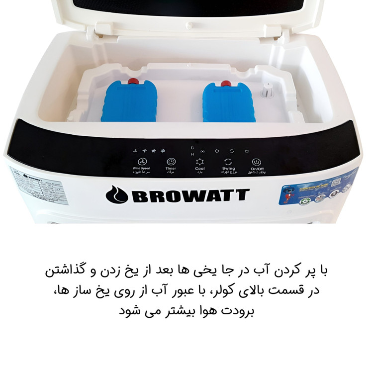 کولر مینی پرتابل سلولوزی 24000 بروات یک دستگاه تهویه محیطی جذاب، کوچک و قدرتمند است که با توجه به وزن کم، قابل حمل بودن و قدرت مناسب به عنوان یک گزینه خوب در دستگاههای خنککننده شناخته میشود. وزن 12/500 کیلوگرم این کولر یکی از ویژگی های آن است که چرخ های کولر نیز قابل حمل بودن این دستگاه خنک کننده را از دیگر کولر های پرتابل مجزا می کند. ظاهر زیبا، طراحی کاربردی،، بازدهی خنکی بالا از دیگر مزایای این کولر است. این کولر مجهز به پدهای سلولزی در دیوارههای داخلی خود است، که نسبت به کولر های قدیمی به سرمایش بهتر کمک می کند. آب از طریق مخزن و پمپ به بالا آمده و پدهای سلولزی با جذب آب و تبدیل آن به هوا، دمای هوای وارد شده را کاهش میدهند. از این رو کولر سلولوزی BR-24000 بروات توانایی ایجاد هوای خنک و تازه در فضاهای مختلف را داراست. وجود محفظه یخ در قسمت بالایی دستگاه باعث افزایش کارایی سرمایشی کولر آبی میشود. از دیگر مزایای این کولر آبی میتوان به پرتابل بودن آن اشاره کرد که به مصرف کنندگان این امکان را میدهد تا دستگاه را به راحتی در هر مکانی که نیاز دارند قرار دهند. کولر سلولوزی BR-24000 بروات به طول 48 سانتیمتر، عرض 30 سانتیمتر و ارتفاع 95 سانتیمتر است. این کولر با وزن 12 کیلوگرمی خود در دسته کولرهای مینی پرتابل قرار دارد و یکی از مهمترین مصارف آن استفاده در مراکز تجاری و اداری است. ظاهر این کولر با سایر کولرهای آبی قدیمی متفاوت است و طراحی منحصربفردی دارد. جنس بدنه این کولر از پلاستیک مقاوم p.p است. بدنه کولر به دلیل وجود ماده p.p مقاوم خواهد بود و خوردگی ایجاد نخواهد شد. بازده خنکی 65 درصد و هوادهی 1400 متر مکعب در ساعت این کولر را در ابعاد مینی خود از دیگر رقبا جدا می کند. در آخر پیشنهاد می شود از این کولر پرتابل مینی استفاده کنید و گرمای تابستان در هتل ها، مکان های اداری و تجاری در امان باشید.کولر مینی پرتابل سلولوزی 24000 بروات یک دستگاه تهویه محیطی جذاب، کوچک و قدرتمند است که با توجه به وزن کم، قابل حمل بودن و قدرت مناسب به عنوان یک گزینه خوب در دستگاههای خنککننده شناخته میشود. وزن 12/500 کیلوگرم این کولر یکی از ویژگی های آن است که چرخ های کولر نیز قابل حمل بودن این دستگاه خنک کننده را از دیگر کولر های پرتابل مجزا می کند. ظاهر زیبا، طراحی کاربردی،، بازدهی خنکی بالا از دیگر مزایای این کولر است. این کولر مجهز به پدهای سلولزی در دیوارههای داخلی خود است، که نسبت به کولر های قدیمی به سرمایش بهتر کمک می کند. آب از طریق مخزن و پمپ به بالا آمده و پدهای سلولزی با جذب آب و تبدیل آن به هوا، دمای هوای وارد شده را کاهش میدهند. البته بعد از رد شدن از روی پدهای سلولوزی به قسمت بالای کولر رفته که اگر جا یخی ها را در قسمت بالا بگذارید موقع رد شدن آب از بالای یخ سازها برودت هوا بیشتر خواهد شد. از این رو کولر سلولوزی BR-24000 بروات توانایی ایجاد هوای خنک و تازه در فضاهای مختلف را داراست. وجود محفظه یخ در قسمت بالایی دستگاه باعث افزایش کارایی سرمایشی کولر آبی میشود. از دیگر مزایای این کولر آبی میتوان به پرتابل بودن آن اشاره کرد که به مصرف کنندگان این امکان را میدهد تا دستگاه را به راحتی در هر مکانی که نیاز دارند قرار دهند. کولر سلولوزی BR-24000 بروات به طول 48 سانتیمتر، عرض 30 سانتیمتر و ارتفاع 95 سانتیمتر است. این کولر با وزن 12 کیلوگرمی خود در دسته کولرهای مینی پرتابل قرار دارد و یکی از مهمترین مصارف آن استفاده در مراکز تجاری و اداری است. ظاهر این کولر با سایر کولرهای آبی قدیمی متفاوت است و طراحی منحصربفردی دارد. جنس بدنه این کولر از پلاستیک مقاوم ABS است. بدنه کولر به دلیل وجود ماده ABS مقاوم خواهد بود و خوردگی ایجاد نخواهد شد. بازده خنکی 65 درصد و هوادهی 1400 متر مکعب در ساعت این کولر را در ابعاد مینی خود از دیگر رقبا جدا می کند. در آخر پیشنهاد می شود از این کولر پرتابل مینی استفاده کنید و گرمای تابستان در هتل ها، مکان های اداری و تجاری در امان باشید.