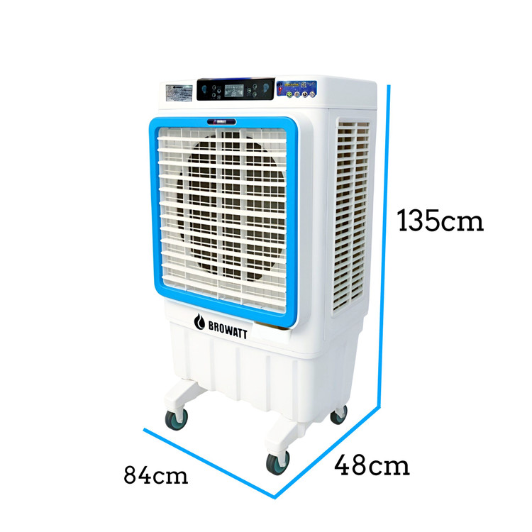 امروزه با گرم تر شدن هوا که هر ساله دمای هوا نسبت به سال های قبل به دلایل مختلفی افزایش می یابد، نیاز به استفاده برای کولر برای انسان ها یکی از واجبات در طول سالیان سال بوده است. کولر های گازی به دلیل گران بودن نسبت به کولرهای آبی خواهان کمتری دارند. البته نوع کولر های آبی نسبت به کولر های گازی خیلی زیاد تر است. کولرهای آبی پرتابل که با نام اختصاری پرتابل بیشتر شناخته می شوند سهم بیشتری از بازار هدف نه تنها در ایران بلکه دنیا را فرا گرفته اند. کولر پرتابل سلولوزی سایز بزرگ بروات مدل P-BR 32000 یکی از محصولات جدید سرمایشی شرکت بروات است که نه تنها در ایران بلکه در کشورهای حوزه خلیج فارس نیز به دلیل کیفیت ساخت در بدنه و سلولوز موجود در آن ها پر فروش هستند. این کولر با طراحی خاص و منحصر بفرد خود با توربین بزرگ و قدرت پرتاب بالا نیازهای یک متراژ 100 تا 140 متری را جواب می دهد. این کولر مجهز به نمایشگر دیجیتال و کنترل از راه دور دارد است که این امکان را به شما میدهد تا سرعت باد، نوع باد، فعال کردن پره های عمودی، … را کنترل کنید. این کولر از مخزن بزرگ 80 لیتری خود بهره می برد به طوری که هوشمند بوده و جریان آب را کنترل می کند. شما به صورت دستی نیز می توانید مخزن 80 لیتری را پر کنید. هوادهی 3800 متر مکعب در ثانیه این کولر خود را از بقیه رقبا جدا کرده و بهترین هوادهی و بازخود را به شما می دهد. در بالای این کولر محفظه جا یخی وجود دارد که 3 عدد جا یخی در بالای کولر قرار میگیرد. کاربد این جا یخی به این صورت است که اگر خواستید برودت کولر را بیشتر کنید باید این جا یخی ها را پر از آب کرده و در یخچال فریزر گذاشته تا یخ بزند. بعد از یخ زدن در بالای کولر بگذارید. موقعی که آب از مخزن به سمت بالا بیاید، آب از روی جا یخی ها رد شده و برودت هوا را بیشتر خواهد کرد. این محصول موقع کار کم صدا بوده و لغزشی ایجاد نمی کند. 4 چرخ زیر کولر نیز این امکان را به شما می دهد تا به راحتی این کولر را حمل کنید. ویژگی بارز این محصول این است که به نسبت و کیفیت بالا جایگزین بسیار توجیه پذیری نسبت به کولر های آبی فلزی و همین طور کولر های گازی دارد. پوشال های این کولر از نوع سلولوزی بوده و برای سلامتی شما هم ضرری ایجاد نمی کند.